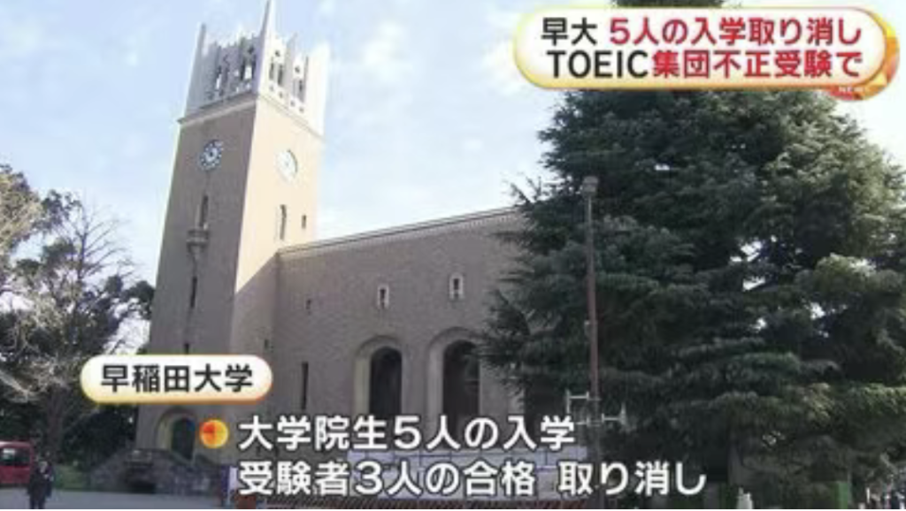 据FNN Prime Online报道,2025年5月,日本警方查获一起涉及多人组织的TOEIC考试作弊案件,作案方式包括代考、替换考生及使用作弊设备等。经核查,共有803名考生的TOEIC成绩被判定无效。早稻田大学随后对用于研究生入试的TOEIC成绩进行全面复查,发现52名考生的成绩与涉案作弊行为存在关联。
